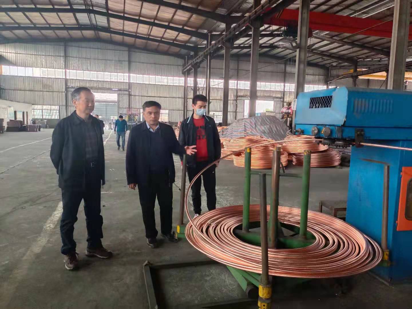 ? ?Accompanied by Chairman Peng, the research group visited the upper guide workshop, T2 copper bar workshop, aluminum ingot workshop and JinLianSheng intelligent doors and Windows exhibition hall. During the visit, we fully understood the development model of the whole circular industrial chain of Baotai Group, which includes recycling of recycled metals -- rough processing -- fine processing -- intelligent manufacturing.
