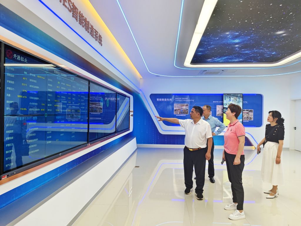 ? ? ? ? President Xu Yun and his delegation first visited the Digitalization Achievements Exhibition Center of Baotai Group. Upon entering the exhibition center, they were presented with the group's innovative achievements and the full picture of its digital transformation practices through various forms such as digital screens and visual data boards. President Peng Baotai detailed the group's development journey and explained how it has relied on digital technology to achieve intelligent upgrades across the entire industrial chain, from the recycling and processing of scrap metals to the recycling of copper and aluminum materials. He also shared digital application cases such as the "one-click copper production" in the intelligent phosphor bronze ball workshop and the precise monitoring of the production process by the intelligent system. The advanced digital management system and high-value product innovation achievements fully demonstrated Baotai Group's leading position in the digital transformation of the industry.