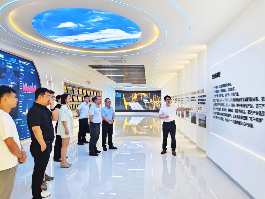 ? ? ? ? Peng Bingfeng, Chairman of Baotai Group and President of the Municipal Youth Enterprise Association, accompanied the research team to visit Baotai Group's Digital Achievement Exhibition Center. Through the dazzling array of digital achievements, advanced intelligent manufacturing technology application scenarios, and innovative circular economy development concepts, the research team gained a clear and profound understanding of Baotai Group's remarkable achievements on the road of digital transformation, and praised its active exploration and innovative development spirit.